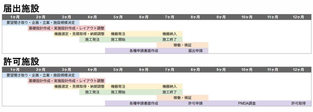 通常は6〜12ヶ月程度が目安です。設計・施工・機器導入・申請準備を並行して進めることで期間を短縮できる場合もあります。