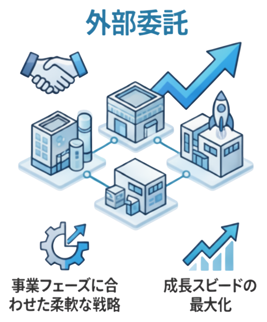 初期コストを抑える戦略的オプション外部委託(アウトソーシングの利用)
