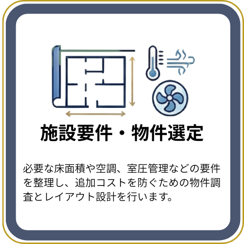 施設計画、設備選定、レイアウト設計など部分的な支援にも対応しています。