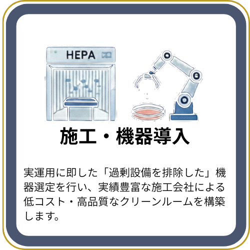 クリーンルーム設計の知識だけでは不十分な場合があります。再生医療の規制や運用を理解した設計が重要です。