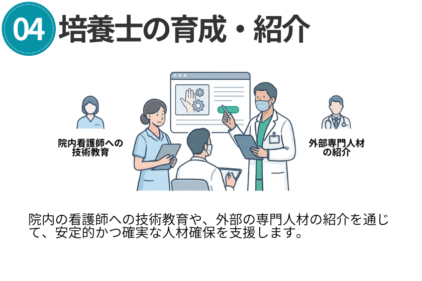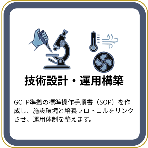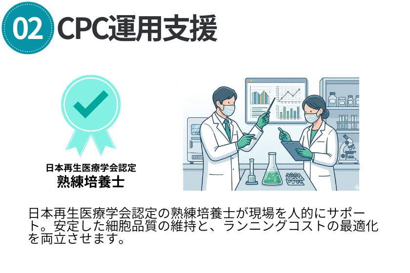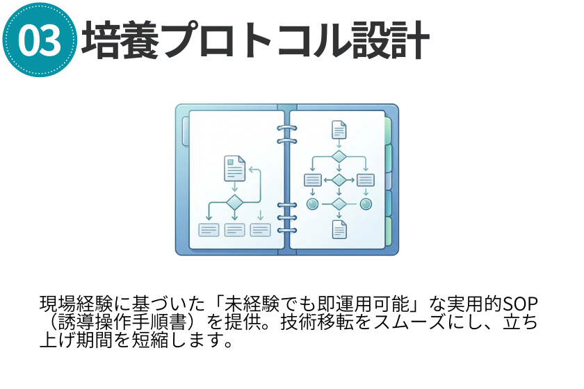 培養士教育、SOP作成、運用支援などのサポートも可能です。